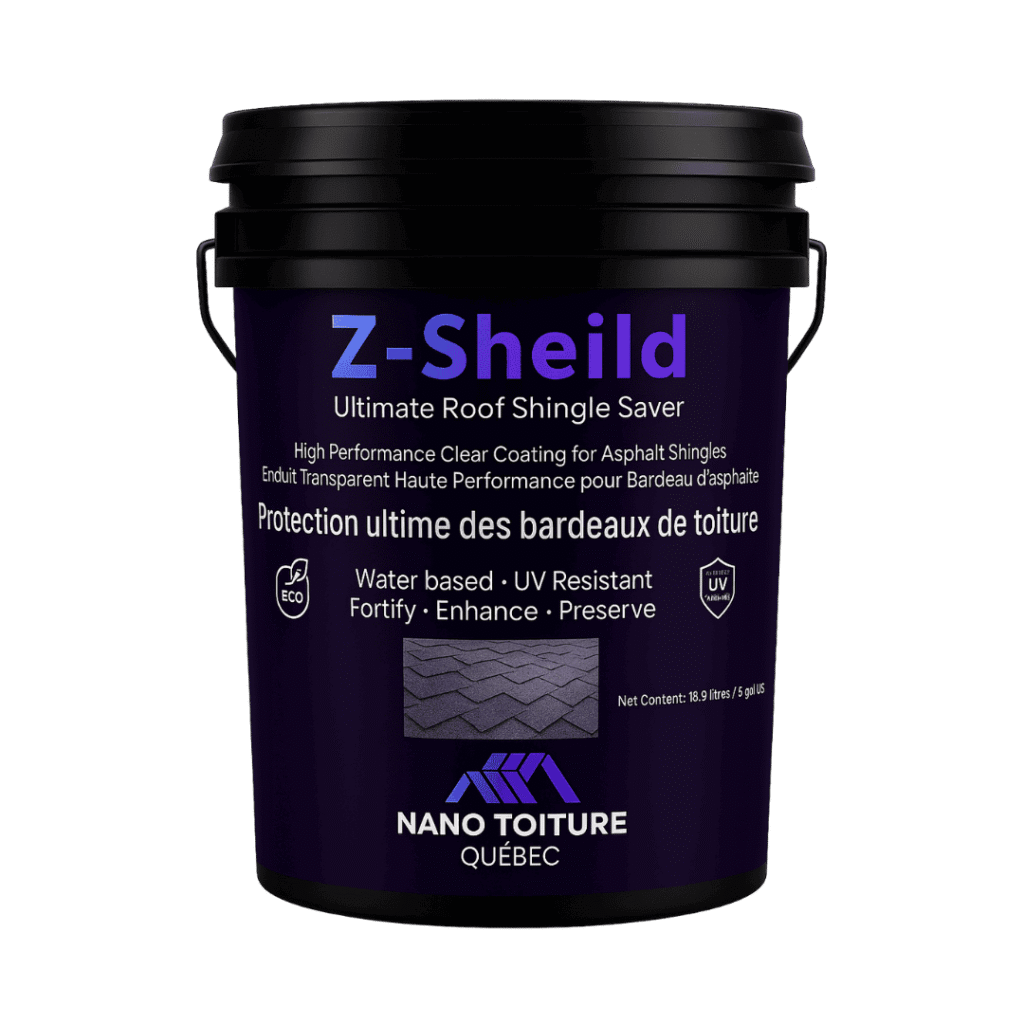 Le Roof Shingle Saver de Nano Toiture Québec est une solution nanotechnologique de régénération et de protection pour les bardeaux d’asphalte.